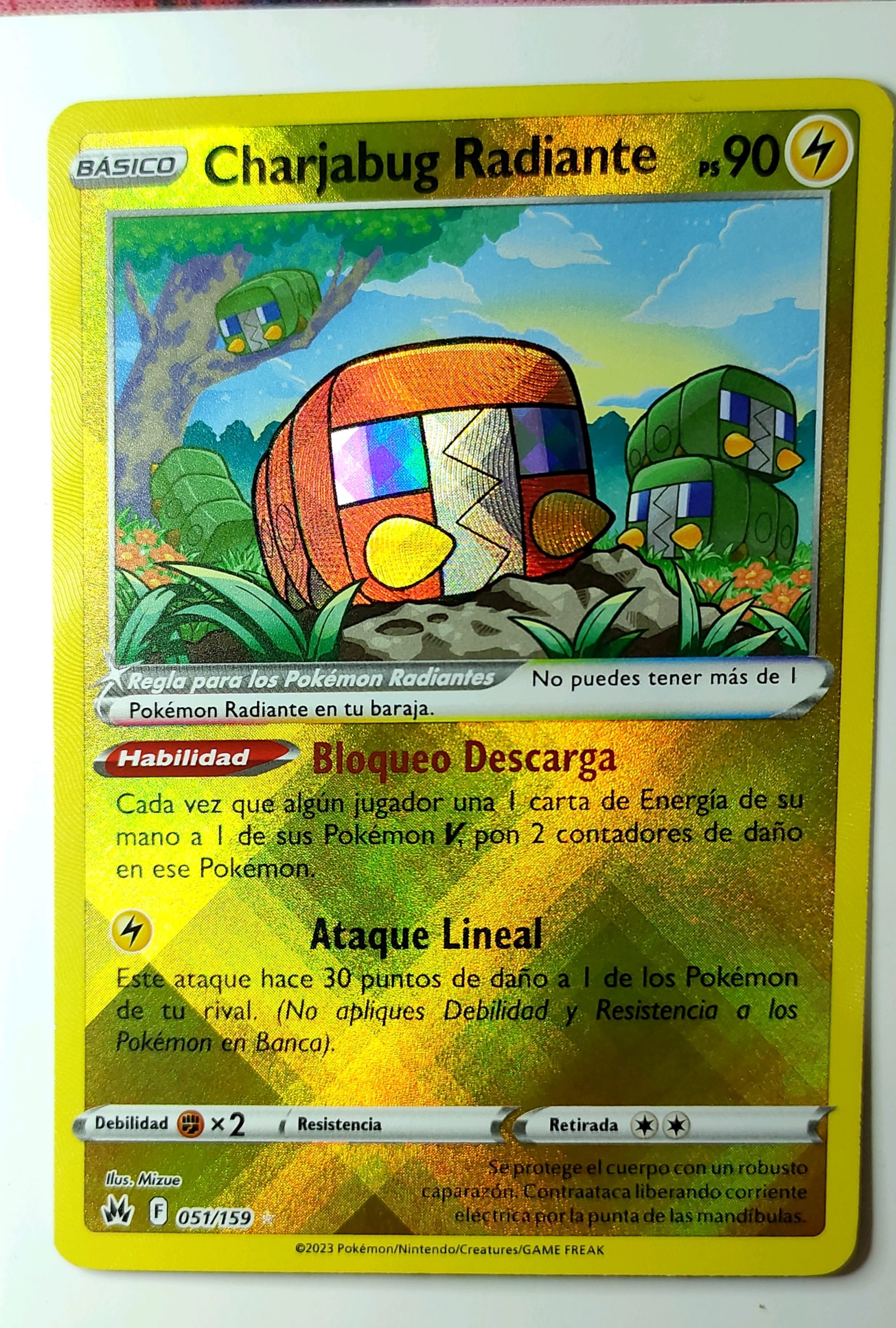 Radiant Charjabug, carta TCG de Pokemon, número 051 del set Crown Zenith, idioma English, impresión Normal.Información adicional